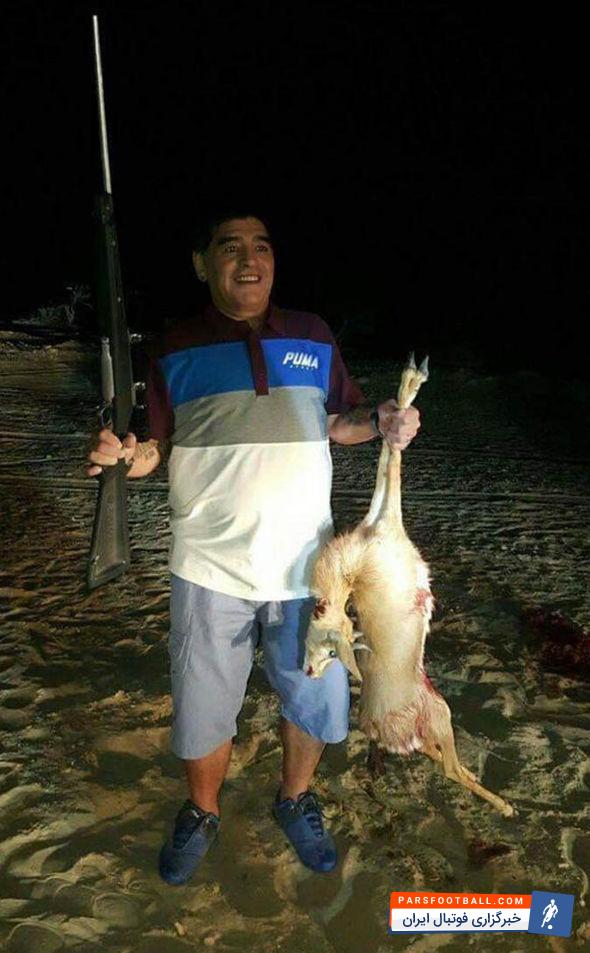 مارادونا تصویری از خود پس از شکار یک غزال عربی که در حال انقراض است منتشر کرده است.همچنین طبق تصاویر، این غزال، کم سن و سال بوده و مارادونا در شبکه های اجتماعی مورد حمله شدید از سوی کاربران قرار گرفته است.