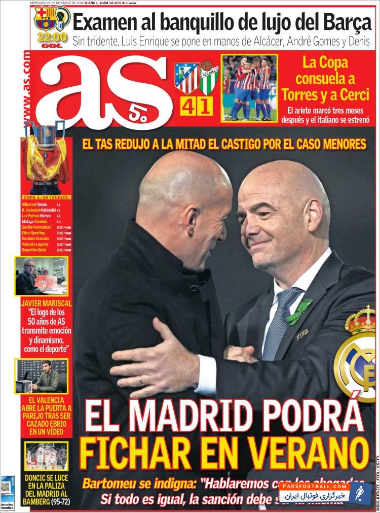 روزنامه آس چاپ اسپانیا ، چهارشنبه ۲۱ دسامبر ؛ رئال روی ابرها