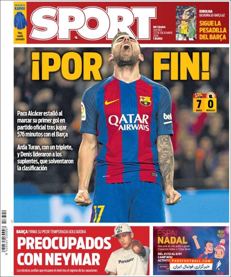 روزنامه اسپورت ، پنجشنبه ۲۲ دسامبر ؛ نگرانی برای نیمار