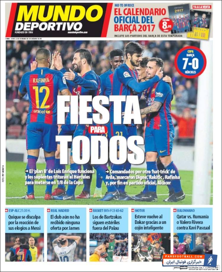 تیتر های نشریهی موندو دپورتیوو در روز پنجشنبه ۲۲ دسامبر به این شرح است :