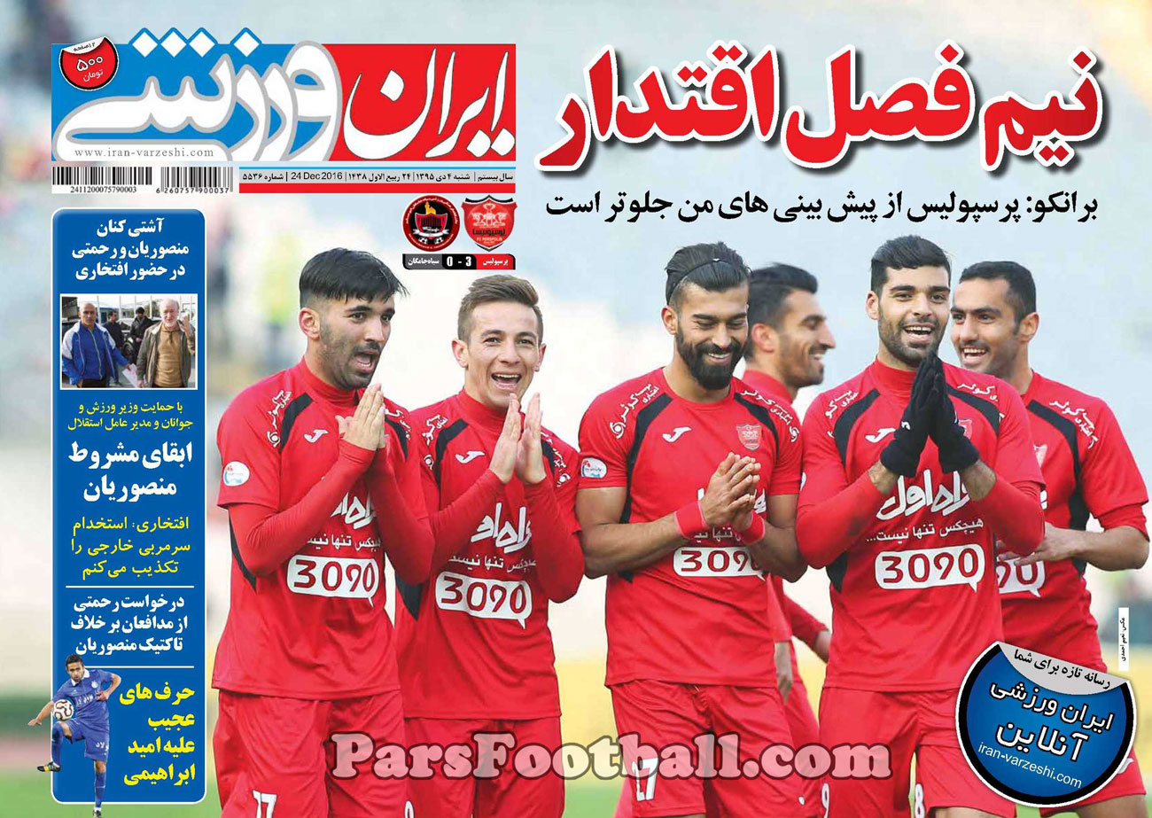 عناوین روزنامه ایران ورزشی در روز شنبه ۴ دی به شرح زیر است :