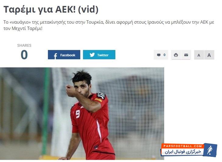 پس از اخبار دریافتی از رسانه های یونانی مبنی بر علاقه باشگاه های معتبر یونانی برای جذب کریم انصاری فرد، حال از این رسانه ها خبر می رسد باشگاه آ اک یونان مهدی طارمی را زیر نظر گرفته است.