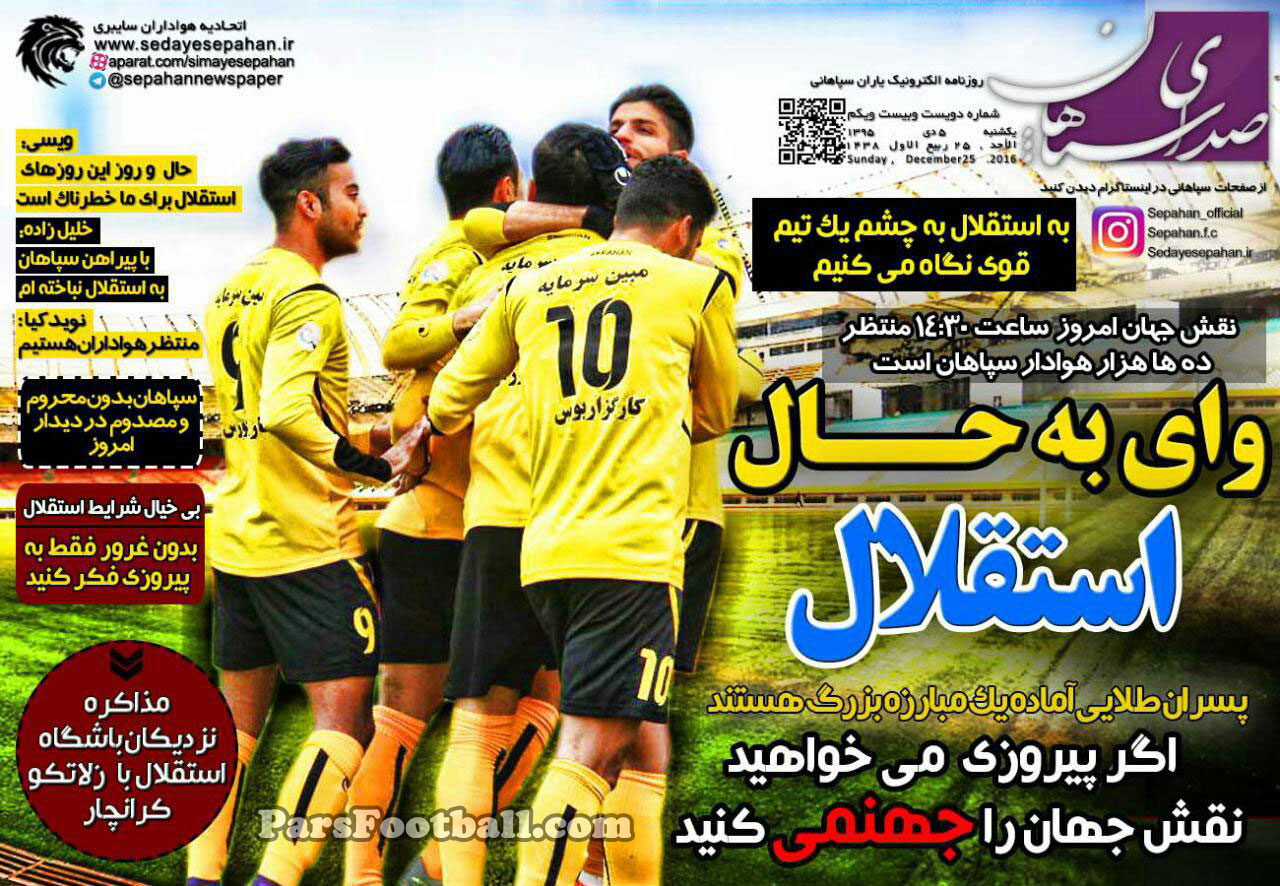 روزنامه صدای سپاهان ، یکشنبه ۵ دی ؛ وای به حال استقلال