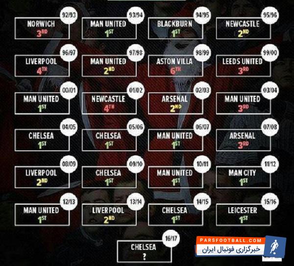 در ۷ سال اخیر، تنها لیورپول سال ۲۰۱۳ موفق نشد صدرنشینی خود را حفظ کند و هواداران خرافاتی چلسی می توانند امیدوار باشد در پایان فصل نام این تیم به عنوان قهرمان لیگ برتر معرفی شود.