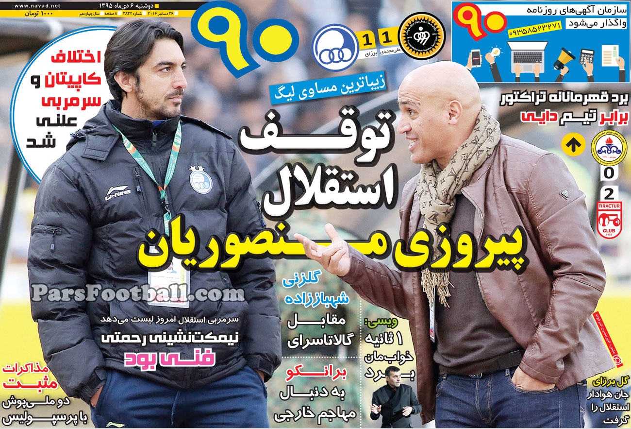 روزنامه نود ، دوشنبه ۶ دی ؛ پیروزی منصوریان
