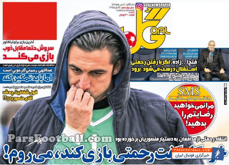 روزنامه گل ، سهشنبه ۷ دی ؛ درگیری مربی استقلال با رحمتی