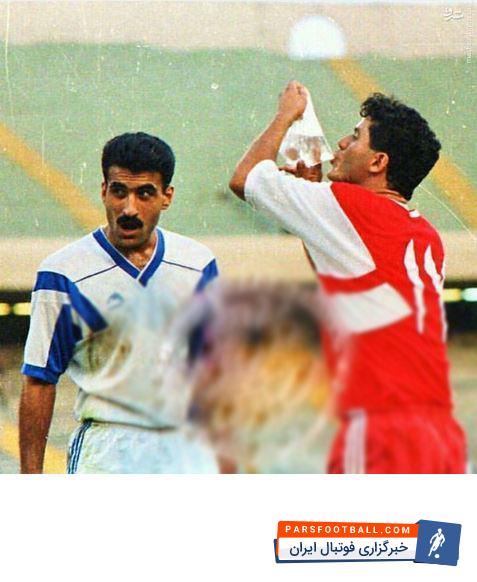 فرشاد پیوس که از با تعصبترین بازیکنان تاریخ فوتبال پرسپولیس و ایران به شمار میرود در این صحنه در حال خوردن آب از یک نایلون است.