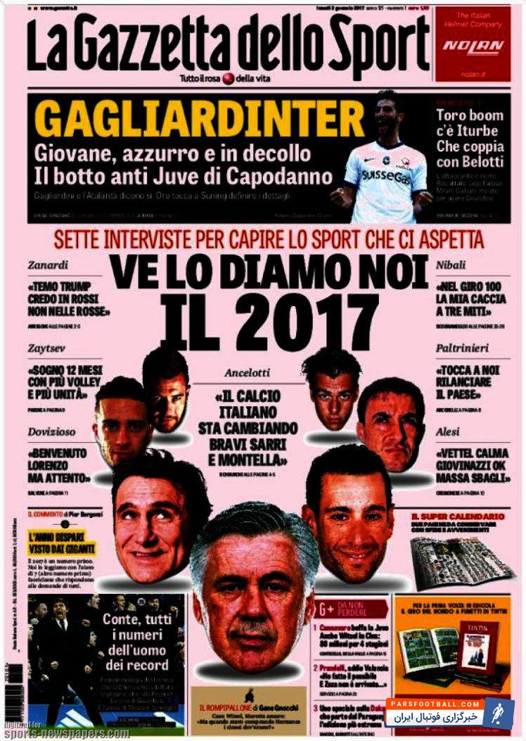 تیتر های نشریهی گاتزتا دلو اسپورت در روز دوشنبه ۲ ژانویه به این شرح است :