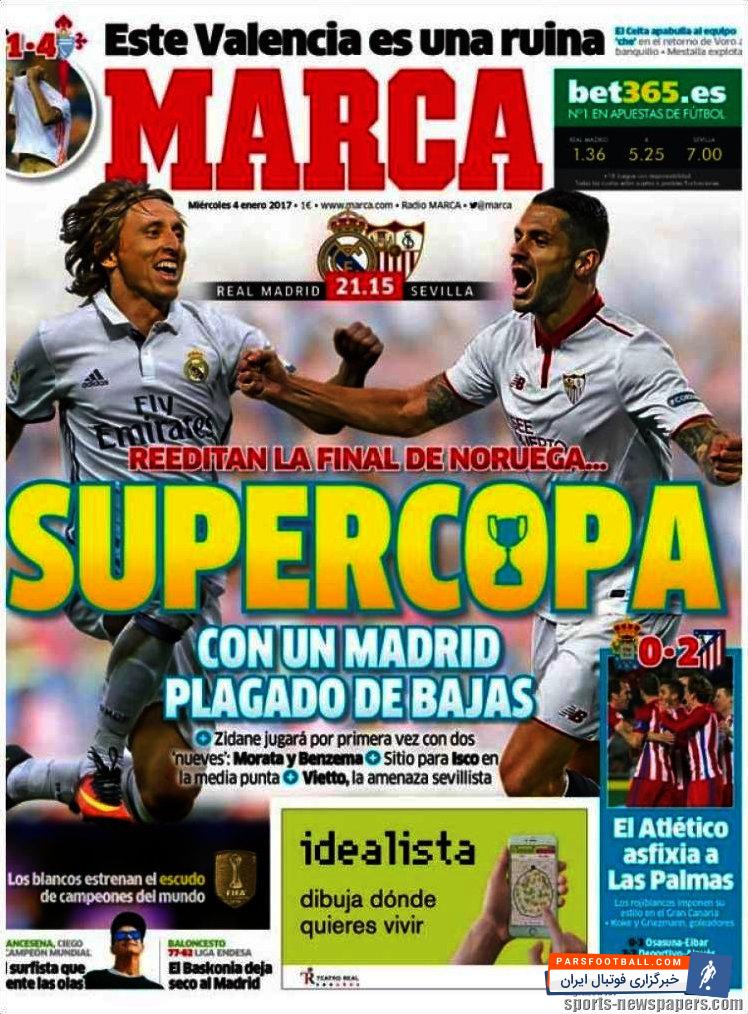 تیتر های نشریهی مارکا چاپ اسپانیا در روز چهارشنبه ۴ ژانویه به این شرح است :