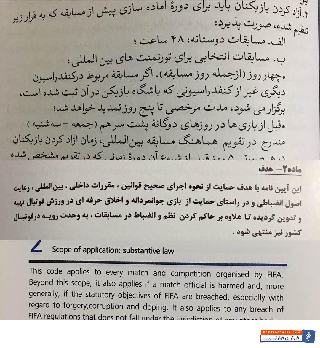 ج- حال که تنور استنادات قانونی داغ است به عرض می رساند دستورالعمل فیفا در خصوص آزادسازی بازیکنان برای حضور در دیدارهای بین المللی به پیوست به حضورتان ایفاد می گردد.