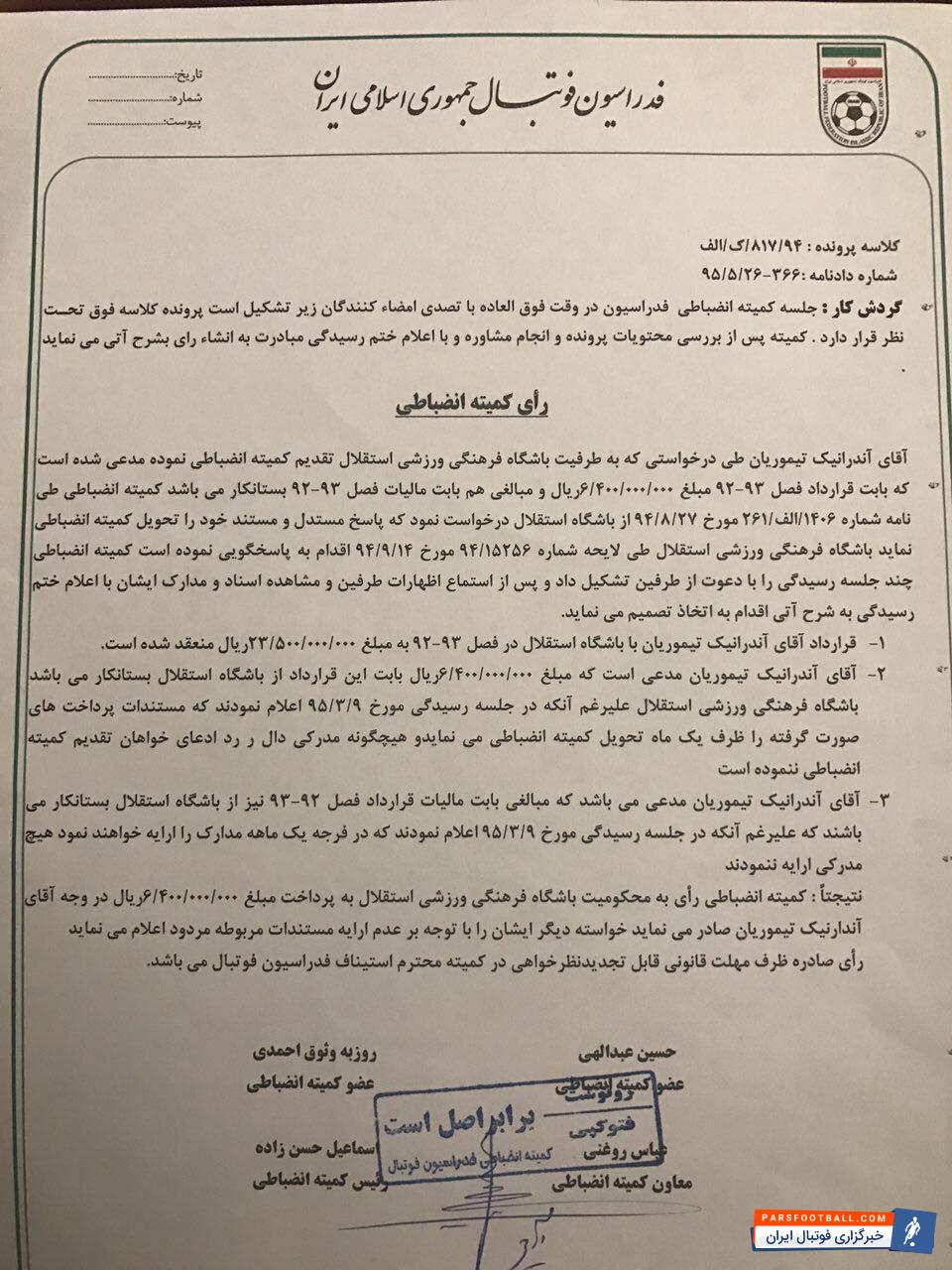 آندرانیک ، استقلال را محکوم کرد ؛ متن رأی کمیته انضباطی به باشگاه!