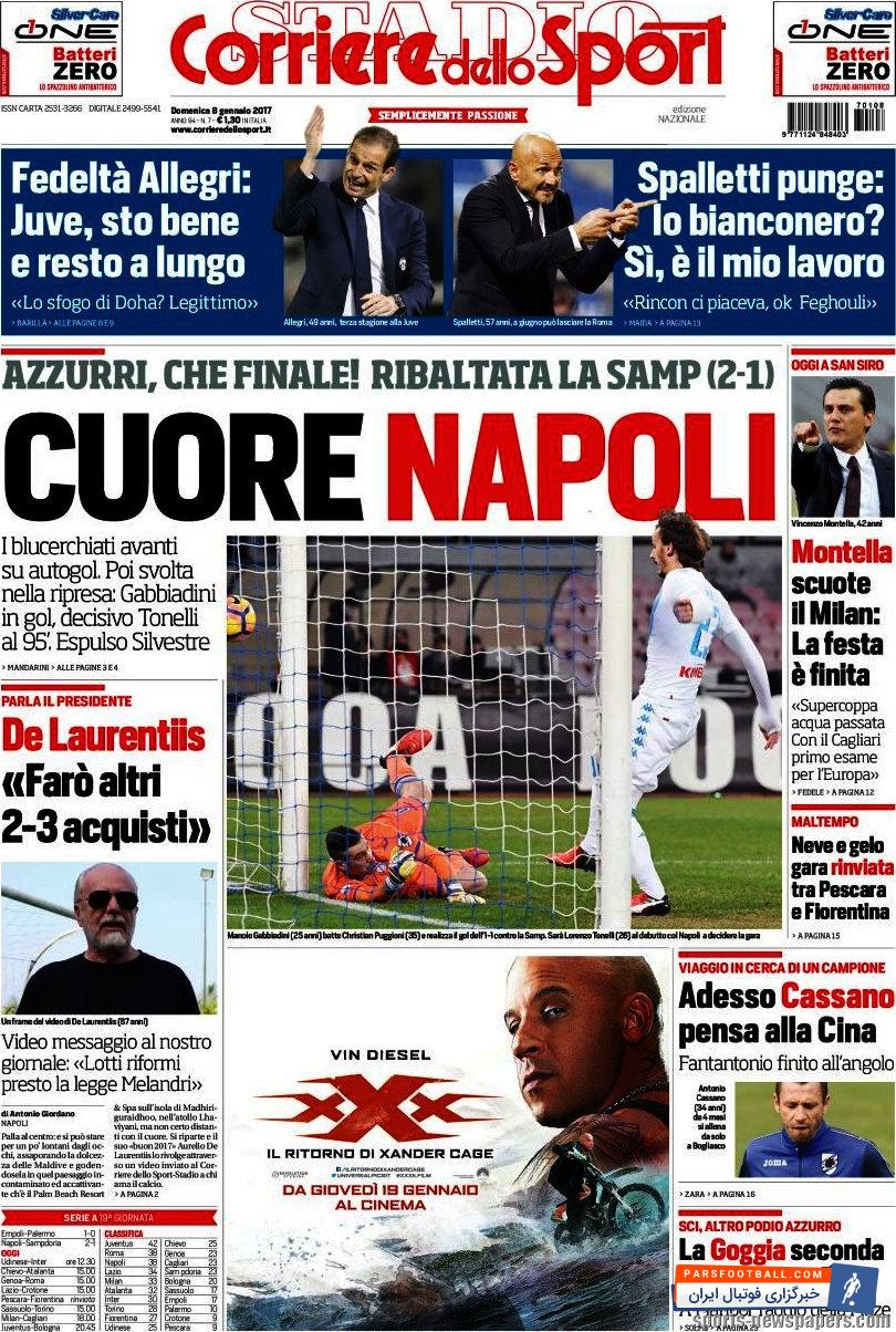 روزنامه کوریره دلو اسپورت ، یکشنبه ۸ ژانویه ؛ قلب ناپولی!