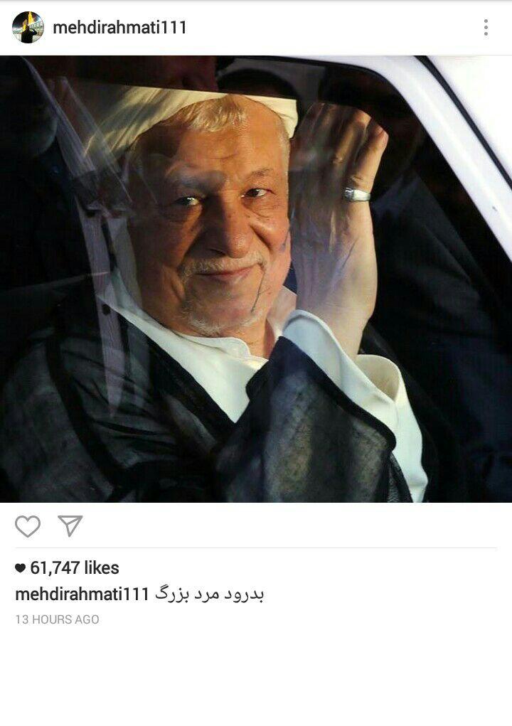پست اینستاگرامی مهدی رحمتی پس از درگذشت آیت الله هاشمی رفسنجانی
