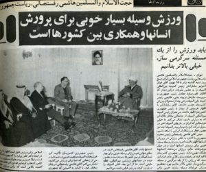 در زیر تصویری از دیدار آیت الله هاشمی با رئیس کمیته بینالمللی المپیک در سال ۱۳۶۹ را ملاحظه مینمایید .