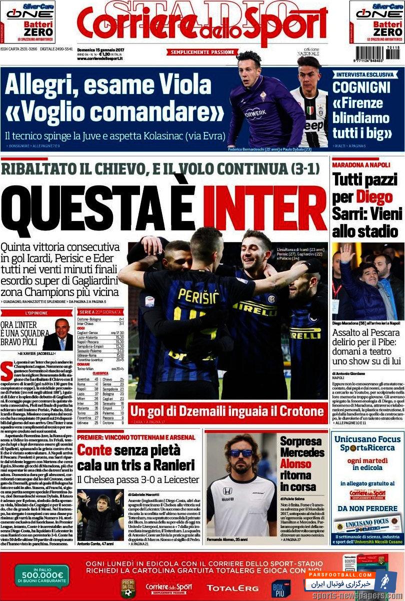 تیتر های نشریهی کوریره دلو اسپورت در روز یکشنبه ۱۵ ژانویه به این شرح است :