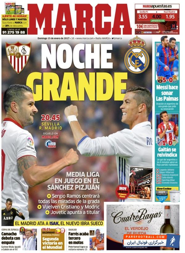 روزنامه مارکا اسپانیا ، یکشنبه ۱۵ ژانویه ؛ شب بزرگ ؛ رئال مادرید-سویا