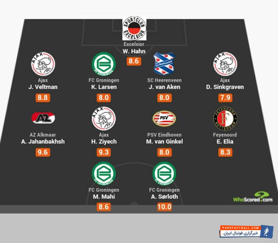 علیرضا جهانبخش وینگر ایرانی آلکمار با نمره عالی ۹.۶ در این ترکیب حضور دارد