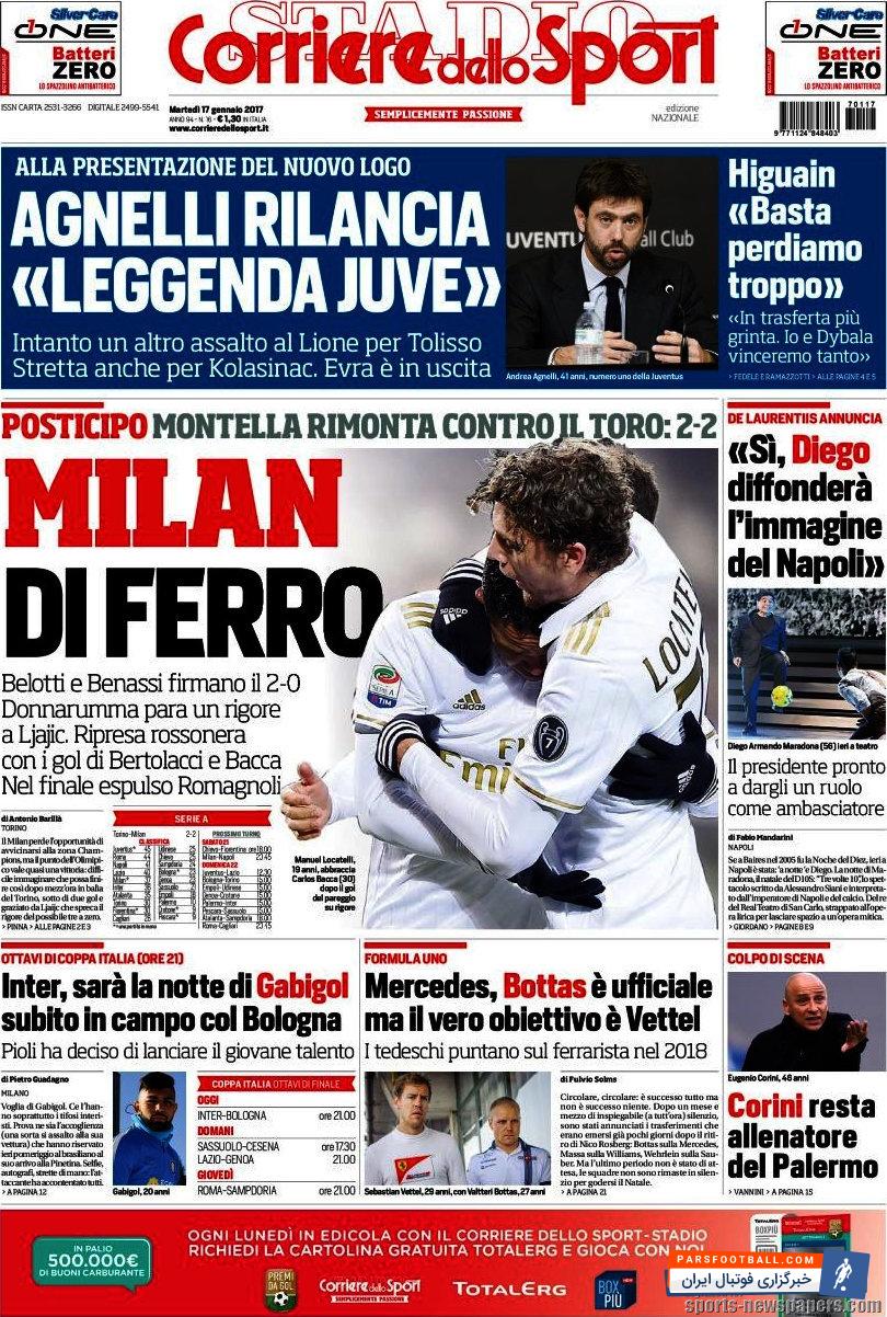 روزنامه کوریره دلو اسپورت ، سهشنبه ۱۷ ژانویه ؛ میلان آهنی !