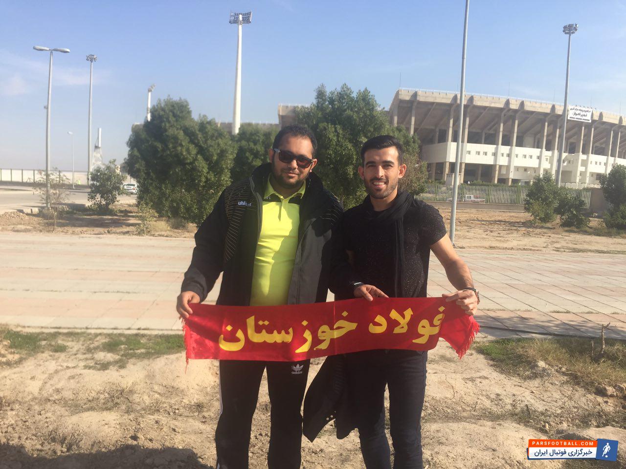 بختیار رحمانی، بازیکن فصول گذشته تیم فولاد خوزستان که شب گذشته قرارداد جدید خود را با این تیم منعقد کرد، برای تماشای این دیدار وارد ورزشگاه شد.