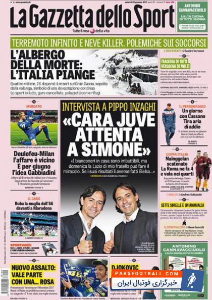 تیتر های نشریهی گاتزتا دلو اسپورت در روز جمعه ۲۰ ژانویه به این شرح است :