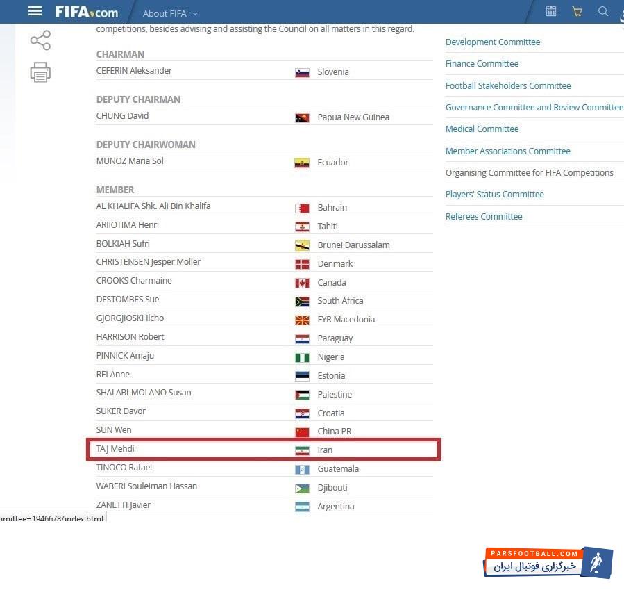 مهدی تاج به عضویت کمیته مسابقات فیفا در آمد