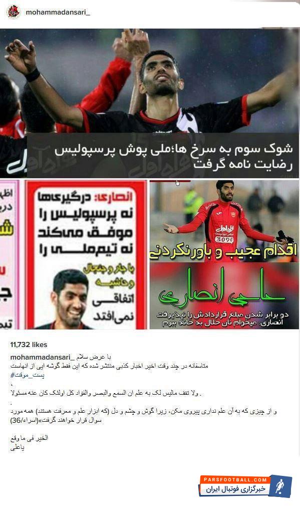 محمد انصاری ستاره تیم پرسپولیس به شایعاتی که اخیرا در مورد او به گوش میرسید واکنش نشان داد.