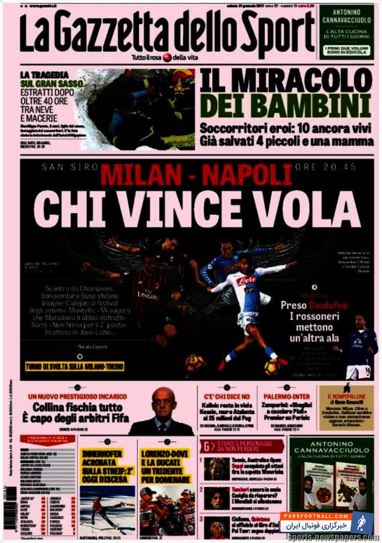روزنامه گاتزتا دلو اسپورت ، شنبه ۲۱ ژانویه ؛ میلان-ناپولی