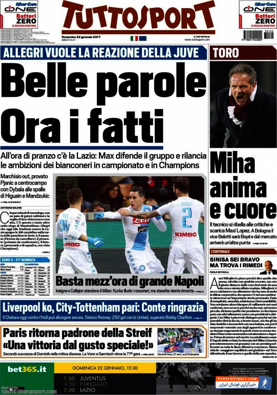 تیتر های نشریهی توتو اسپورت در روز یکشنبه ۲۲ ژانویه به این شرح است :