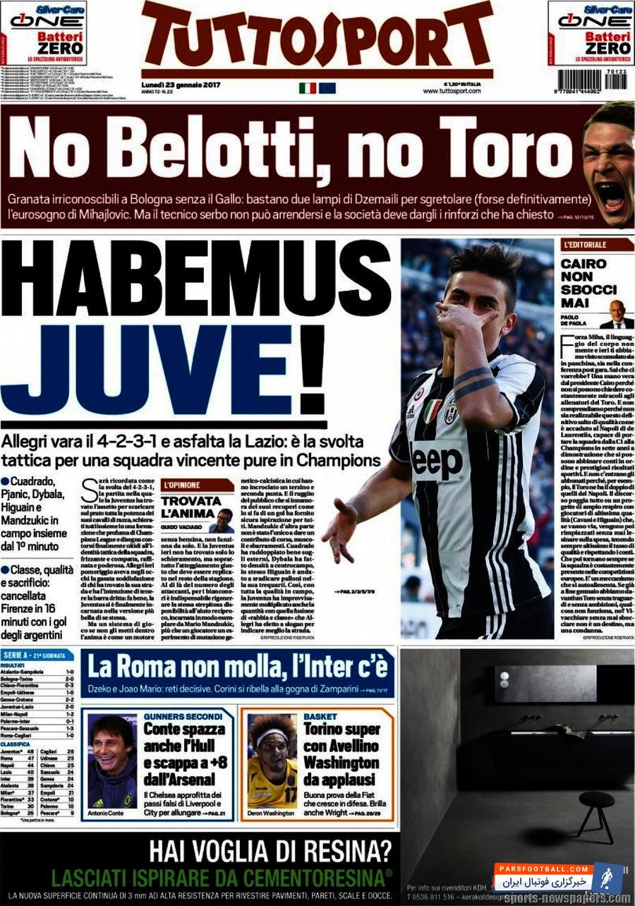 روزنامه توتو اسپورت ، دوشنبه ۲۳ ژانویه ؛ یووه به دنبال لیگ قهرمانان !