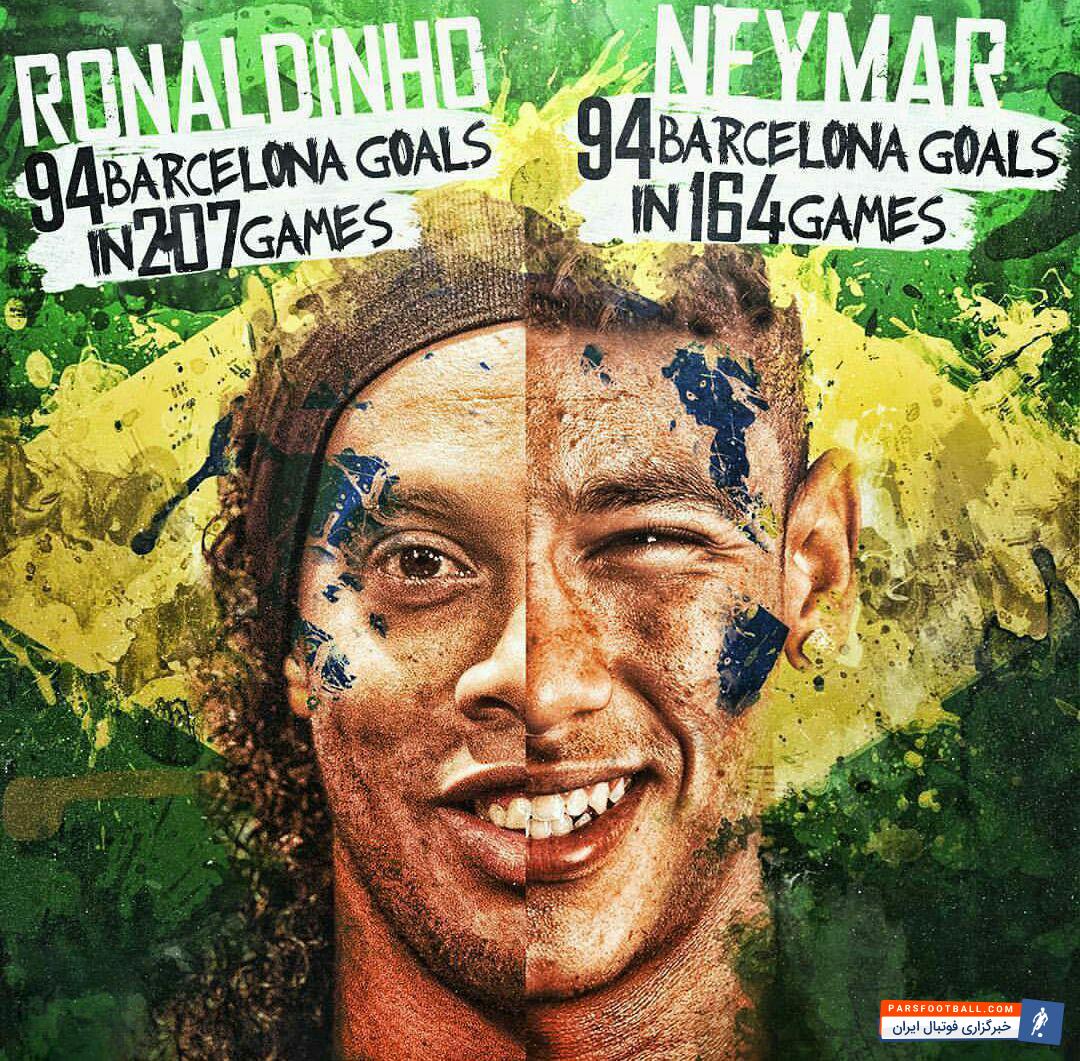 پوستر ؛ ۹۴ گل در ۱۶۴ بازی ، نیمار رکورد رونالدینیو را شکست !