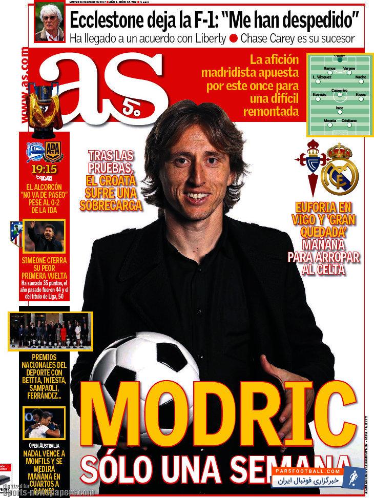 روزنامه AS اسپانیا ، سهشنبه ۲۴ ژانویه ؛ مودریچ تنها یک هفته دور از میادین