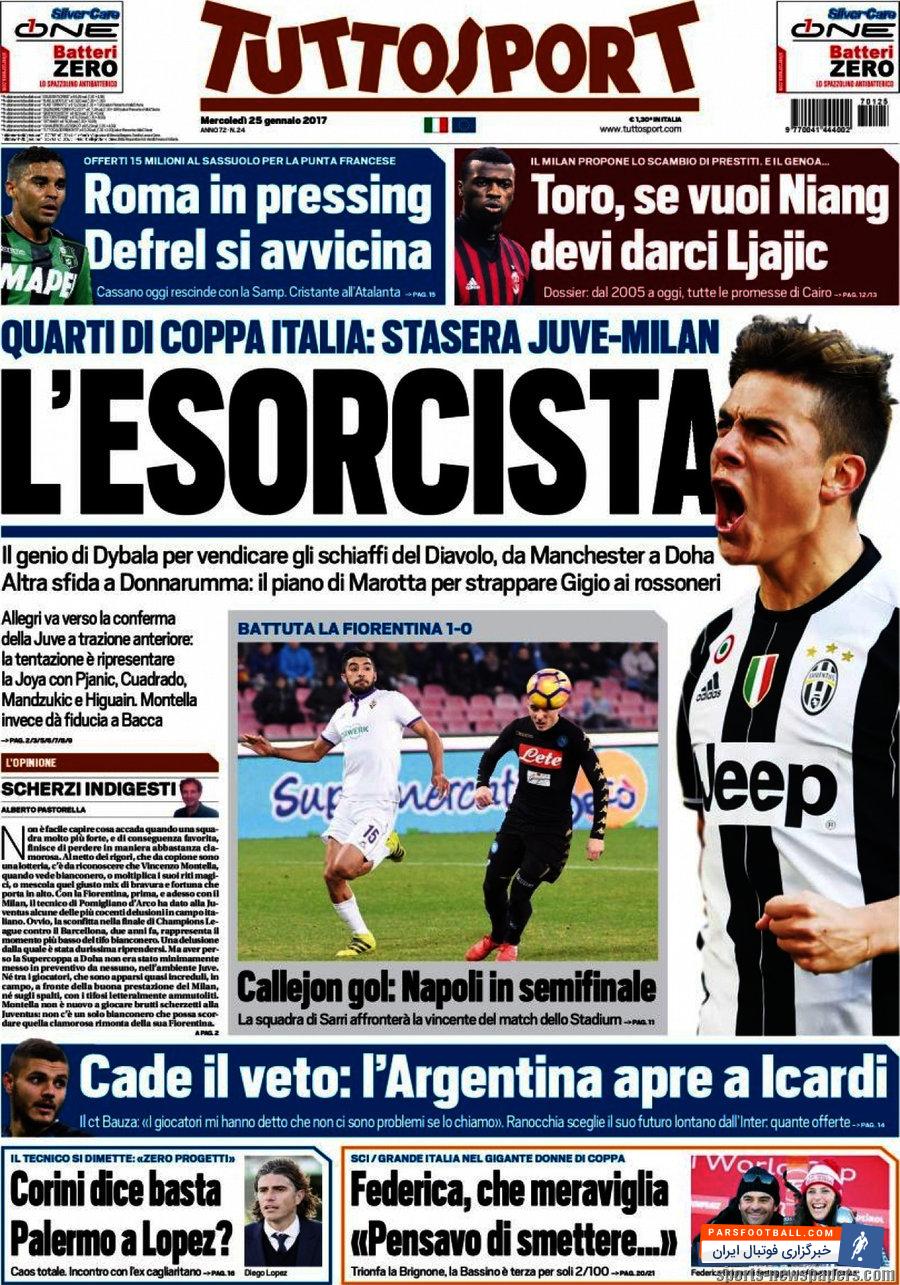 روزنامه توتو اسپورت ، چهارشنبه ۲۵ ژانویه ؛ جن گیر !