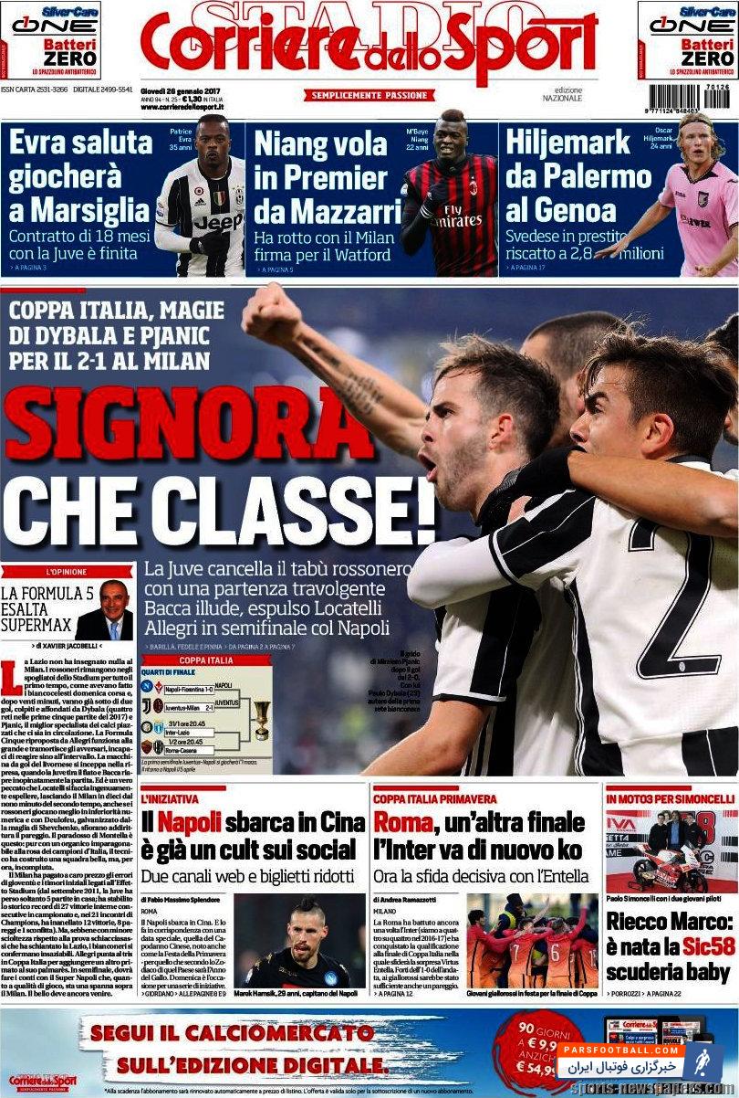 تیتر های نشریهی کوریره دلو اسپورت در روز پنجشنبه ۲۶ ژانویه به این شرح است :