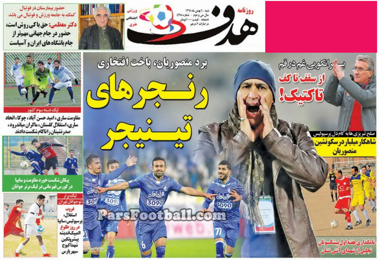 روزنامه هدف ، شنبه ۹ بهمن ؛ برانکو بی غم در قم !