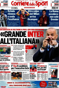 روزنامه کوریره دلو اسپورت ، شنبه ۲۸ ژانویه ؛ استایل ایتالیایی بزرگ اینتر