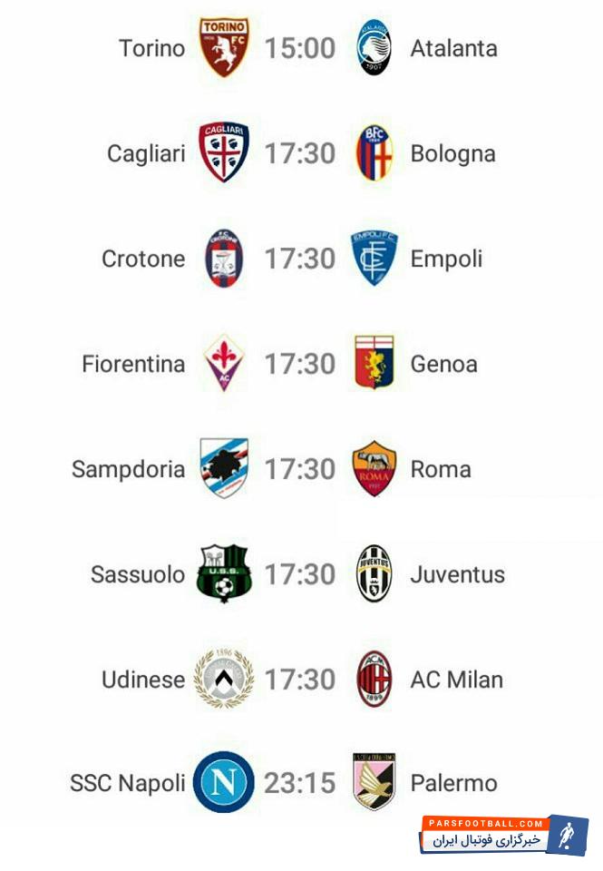 برنامه دیدار های امروز هفته بیست و دوم سری آ ایتالیا