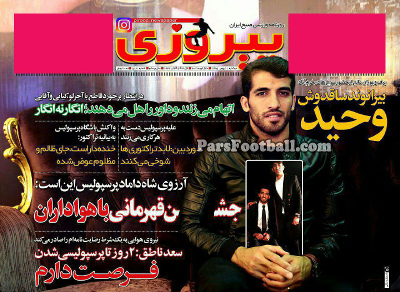 روزنامه پیروزی ، دوشنبه ۱۱ بهمن ؛ آرزوی وحید امیری