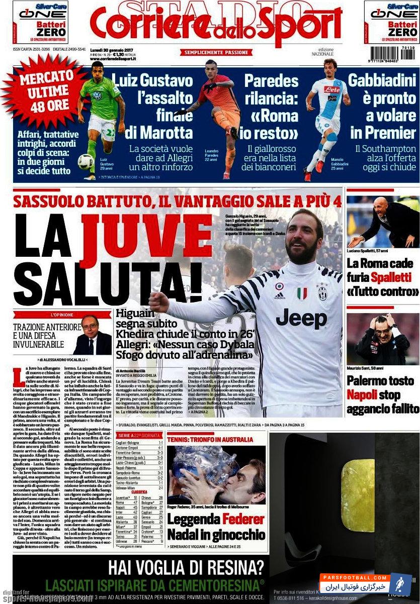 تیتر های نشریهی کوریره دلو اسپورت در روز دوشنبه ۳۰ ژانویه به این شرح است :