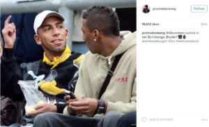 ژروم بواتنگ، مدافع بایرن مونیخ در پستی اینستاگرامی به این اتفاق واکنش نشان داد و با انتشار عکسی از خود و دژاگه نوشت: