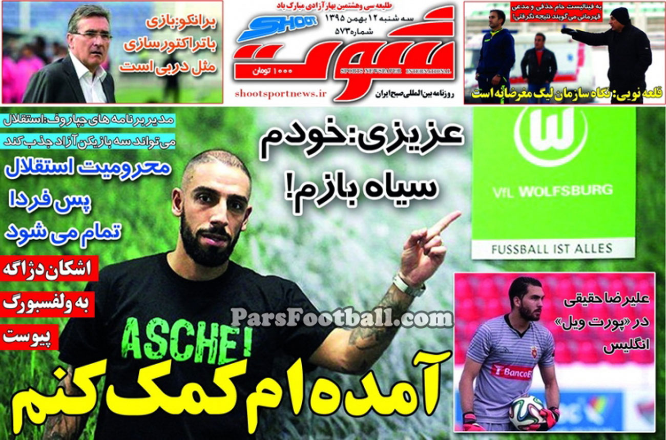 عناوین روزنامه شوت در روز سهشنبه ۱۲ بهمن به شرح زیر است :