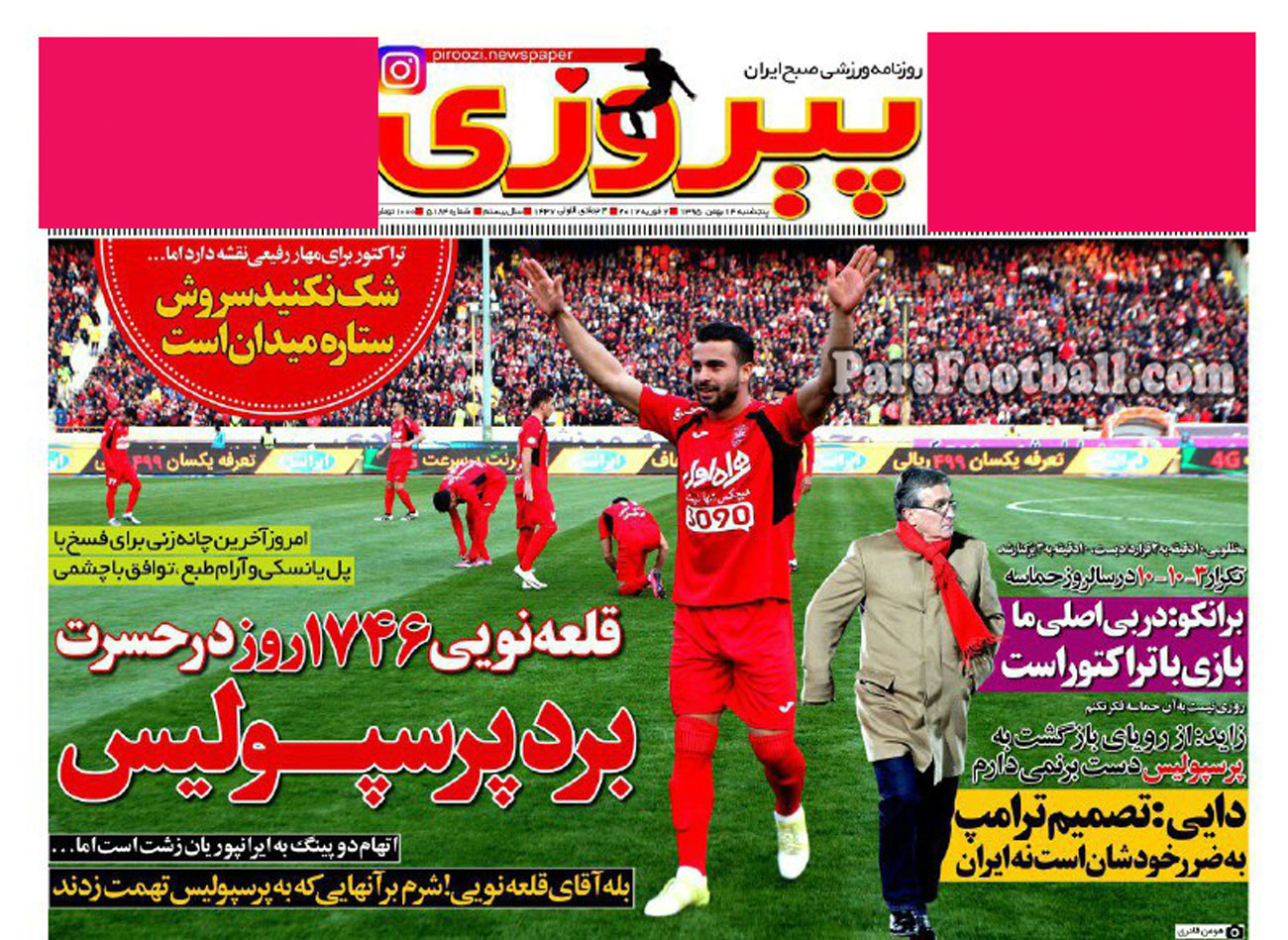 گیشه اخبار داخلی پارس فوتبال همه روزه به بررسی نشریات ورزشی می پردازد. به بررسی روزنامه پیروزی می پردازیم.