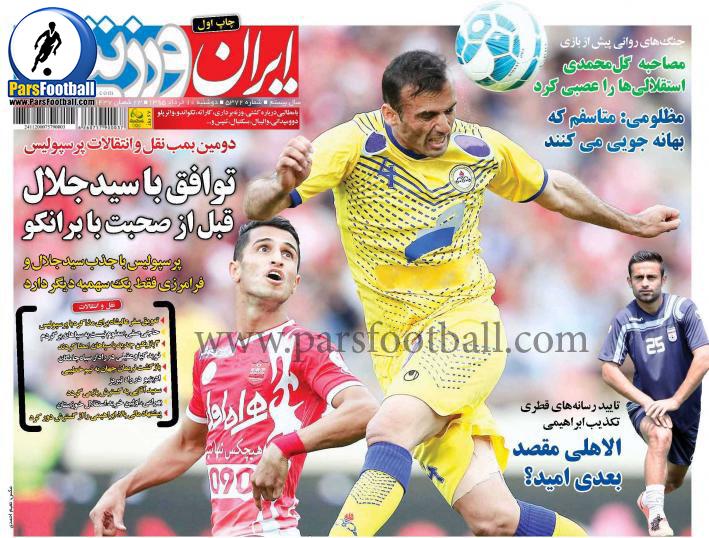 روزنامه ایران ورزشی ۱۰ خرداد| توافق با سید جلال قبل از صحبت با برانکو | مصاحبه گل محمدی استقلالی ها را عصبی کرد |الاهلی مقصد بعدی امید ؟