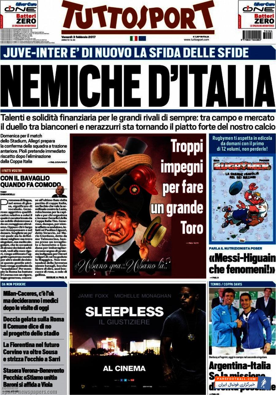 روزنامه توتو اسپورت ، جمعه ۳ فوریه ؛ دو دشمن ایتالیایی !
