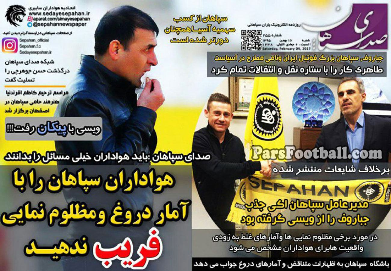 گیشه اخبار داخلی پارس فوتبال همه روزه به بررسی نشریات ورزشی می پردازد. به بررسی روزنامه صدای سپاهان می پردازیم.