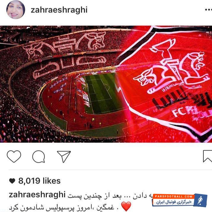 زهرا اشراقی پس از برد پرسپولیس مقابل تراکتورسازی پست جالبی را در اینستاگرام منتشر کرد.