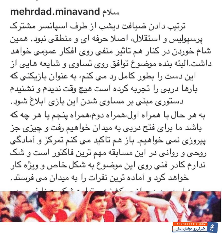 مهرداد میناوند و انتقاد از ضیافت مشترک تیم های استقلال و پرسپولیس
