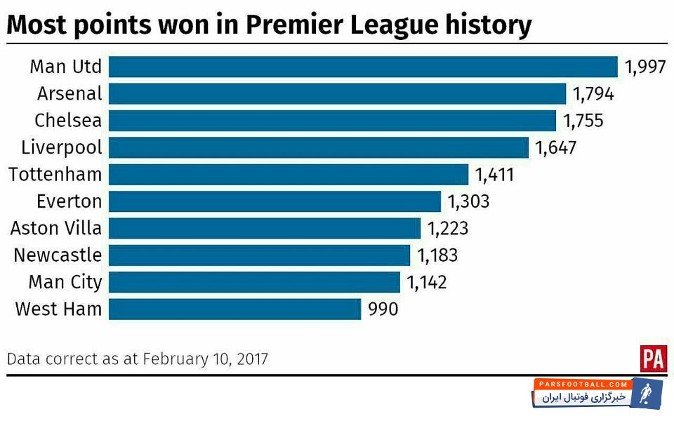 لیگ برتر انگلیس و رکورد فوق‌العاده کسب 2000 امتیاز توسط منچستریونایتد
