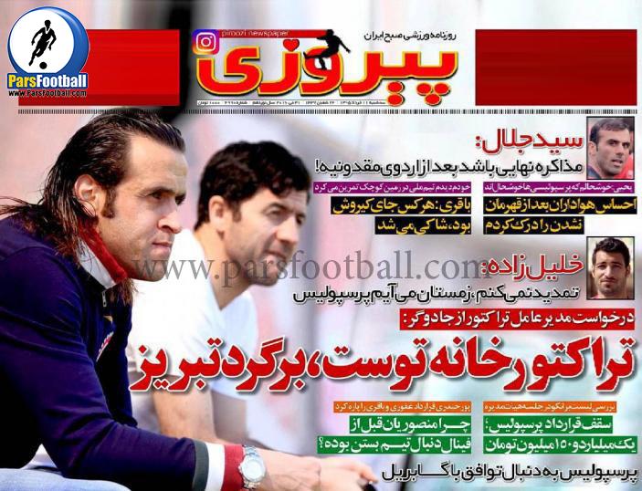 روزنامه پیروزی ۱۱ خرداد | تراکتور خانه توست ، برگرد تبریز | پرسپولیس به دنبال توافق با گابریل