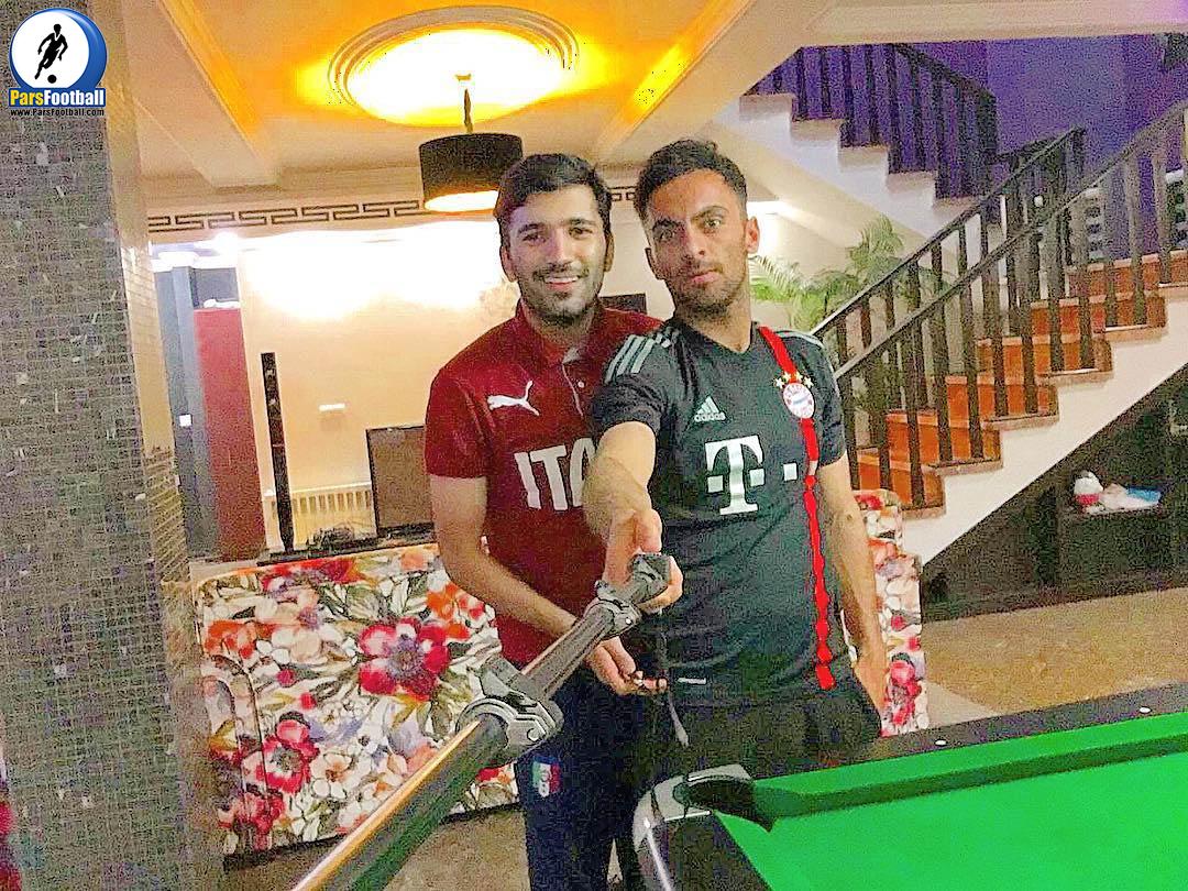 عکس | سلفی هافبک پرسپولیس و بهادر عبدی کنار میز بیلیارد