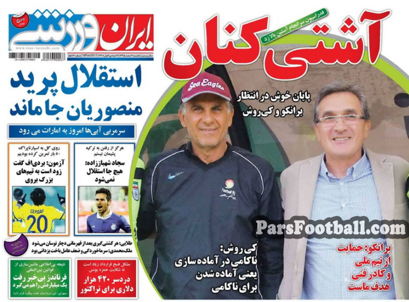 روزنامه ایران ورزشی ، یکشنبه ۱ اسفند ؛ آشتی کنان !